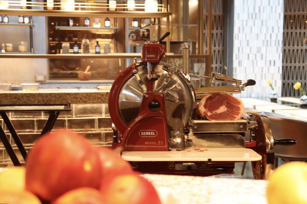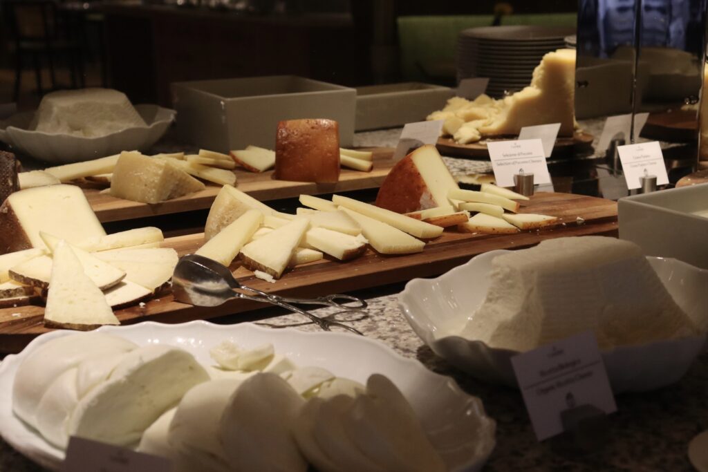 均等に並べられたチーズ、限りなく薄くスライスされた生ハム。