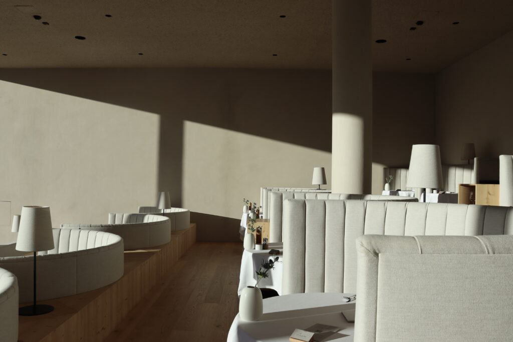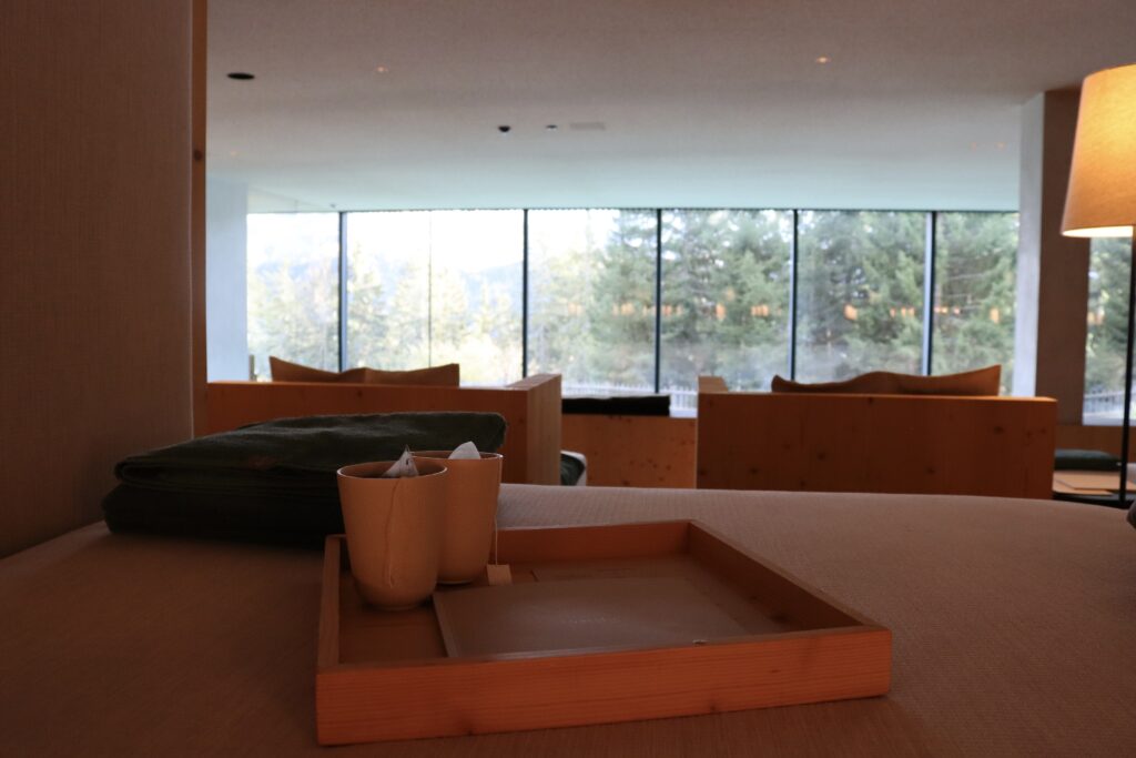 デザインは山と森、素材と光、音と静寂、そのすべてが設計され尽くしている。