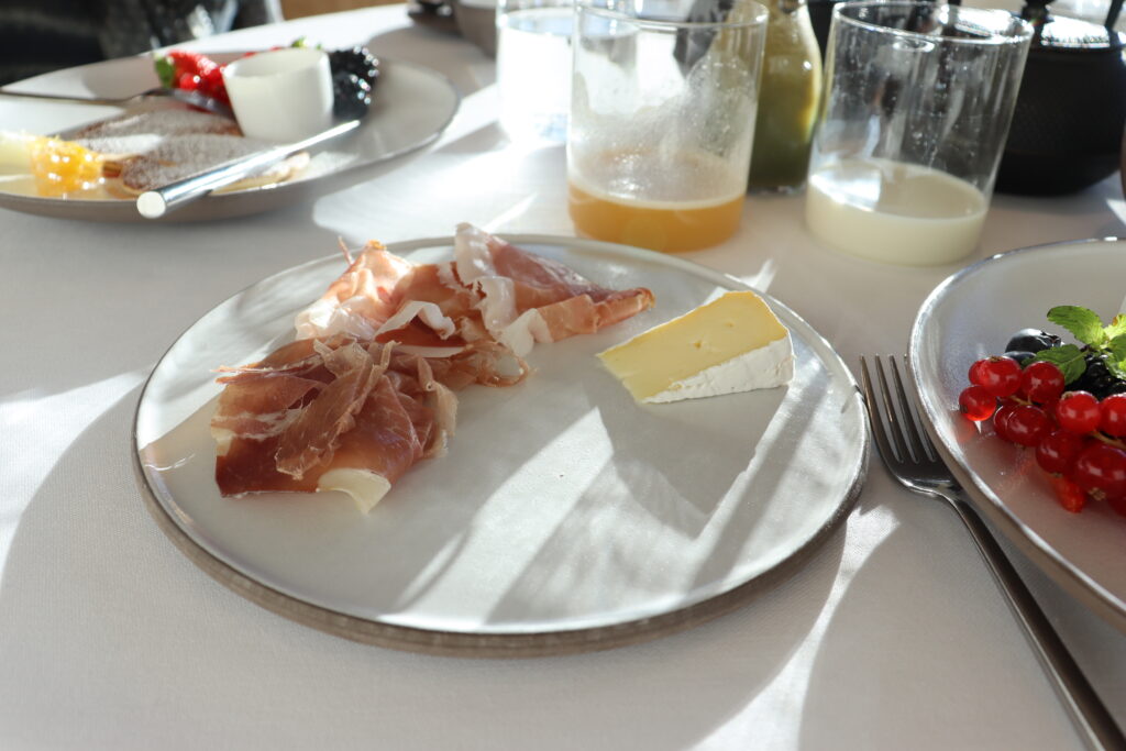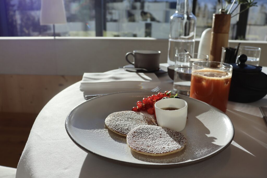朝食は、大きな窓から注ぐ朝の光が森の湿度を含みながら柔らかくテーブルを照らし、